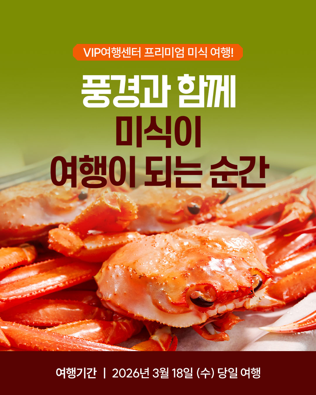 [2026] 3/18(수) [테마여행·맛기행] 울진 대게 & 죽변 해안 스카이레일 당일여행 (노쇼핑 · 노옵션 · 노팁)