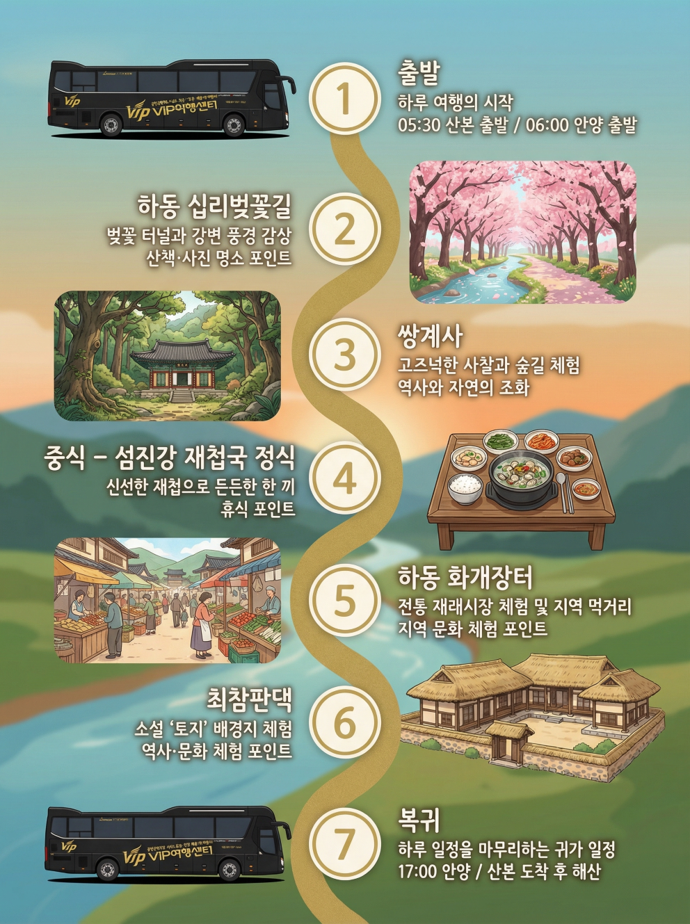 [2026] 3/31(화) 하동 십리벚꽃길 & 최참판댁 당일여행 (노쇼핑 · 노옵션 · 노팁)