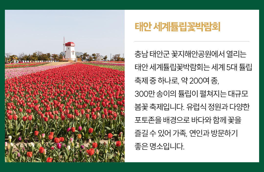 4/27(월) 태안 튤립축제 / 개심사 청벚꽃 / 한우목장웰빙산책로 (노쇼핑 · 노옵션 · 노팁)