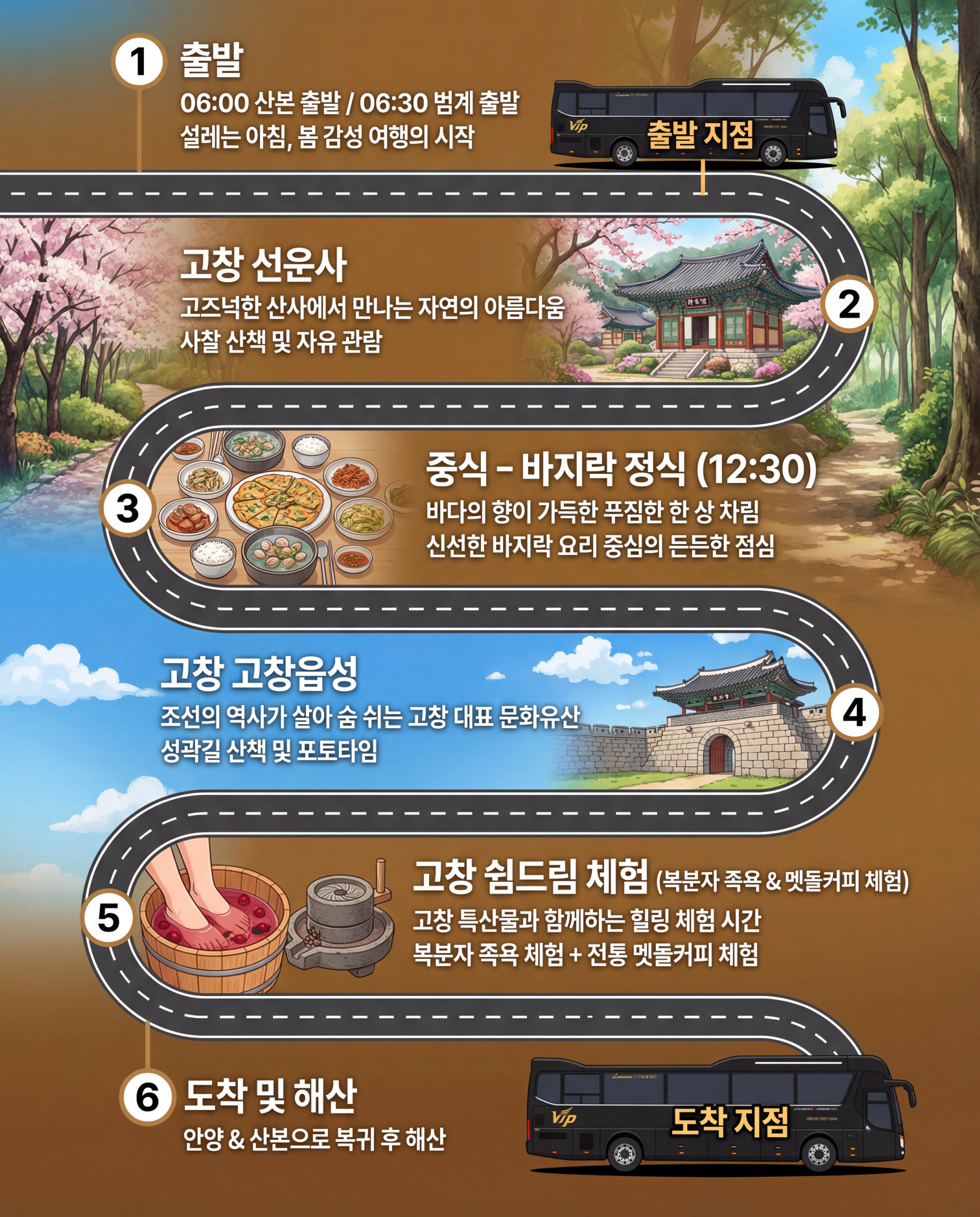 4/6(월) 고창에서 뭐해봤니? 선운사 동백꽃 · 고창읍성 벚꽃 · 복분자 족욕체험 (노쇼핑 · 노옵션 · 노팁)